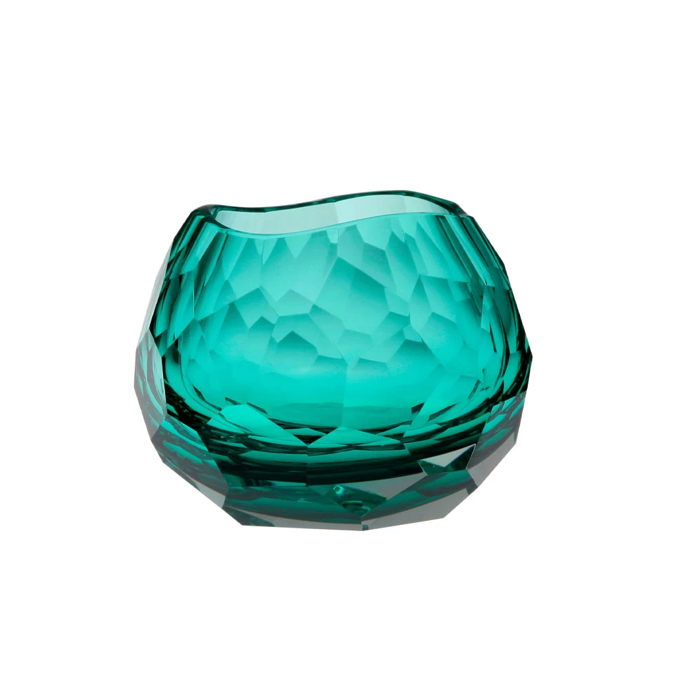 The Glacier collection evokes natural ice formations through its asymmetrical faceted shape. It reflects light through the hand-cut facets, creating mesmerizing patterns. Designed for Artel by David Wiseman, a renowned American designer. Made from mouth-blown, hand-cut, and hand-polished crystal.
