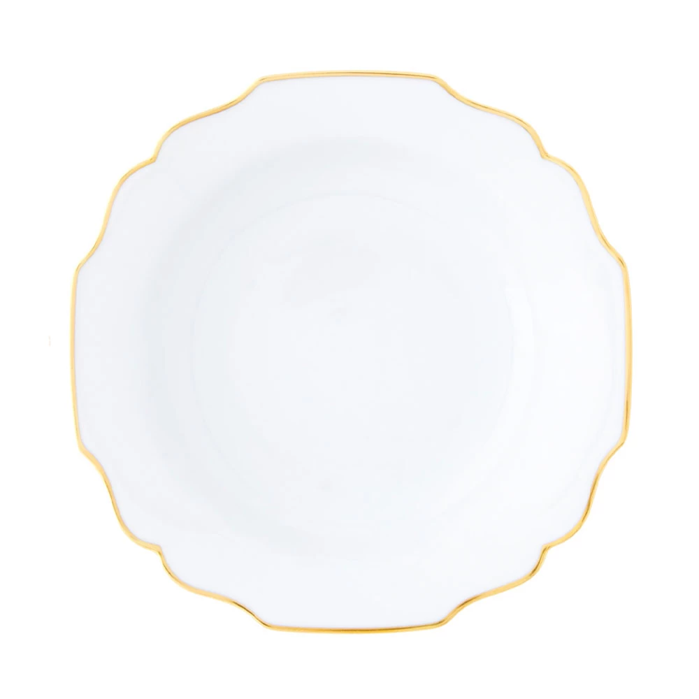 The Augarten Belvedere Gold Rim Dinnerware features a gentle scalloped rim. Made from pure white handcrafted porcelain detailed with a 24 karat gold band around its edge. First designed in 1735, this pattern offers a timeless style. Pair with pieces from the Schubert and Belvedere collections for a sophisticated and balanced table scheme.