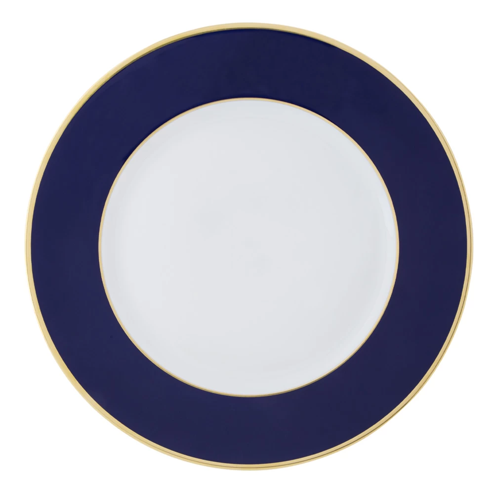 The Augarten Colored Rimmed Charger in cobalt blue features a solid hand painted colored rim. This pattern is realized on a classic and elegant round shape called Schubert. The Schubert shape dates back to the Biedermeier capturing the spirit of Viennese style. This pattern also features a 24 karat gold edge. Pair with any of the other Augarten dinnerware patterns or with your existing dinnerware pattern.