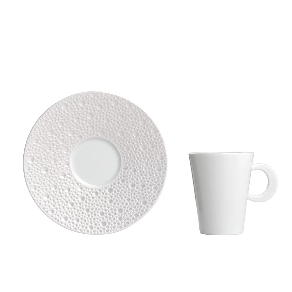 The Ecume Perle collection features modern texture with a subtle mother-of-pearl finish. The delicate finish offers a soft iridescent shimmer. While the hollow engraving along the rim gives these pieces a contemporary poetic effect.