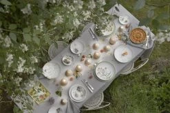 Based on nineteenth century illustrations of a Mumbai garden, the Jardin Indien collection features flowers and foliage. The whimsy of the patterns and colorful watercolors will liven up any table.
