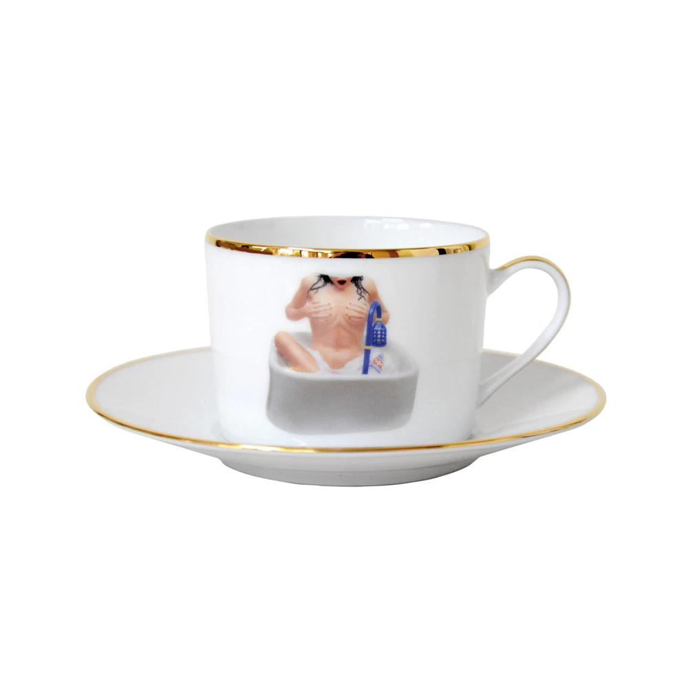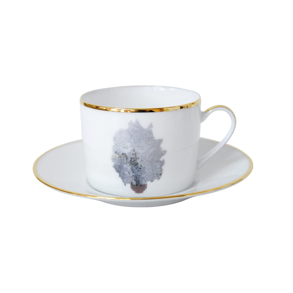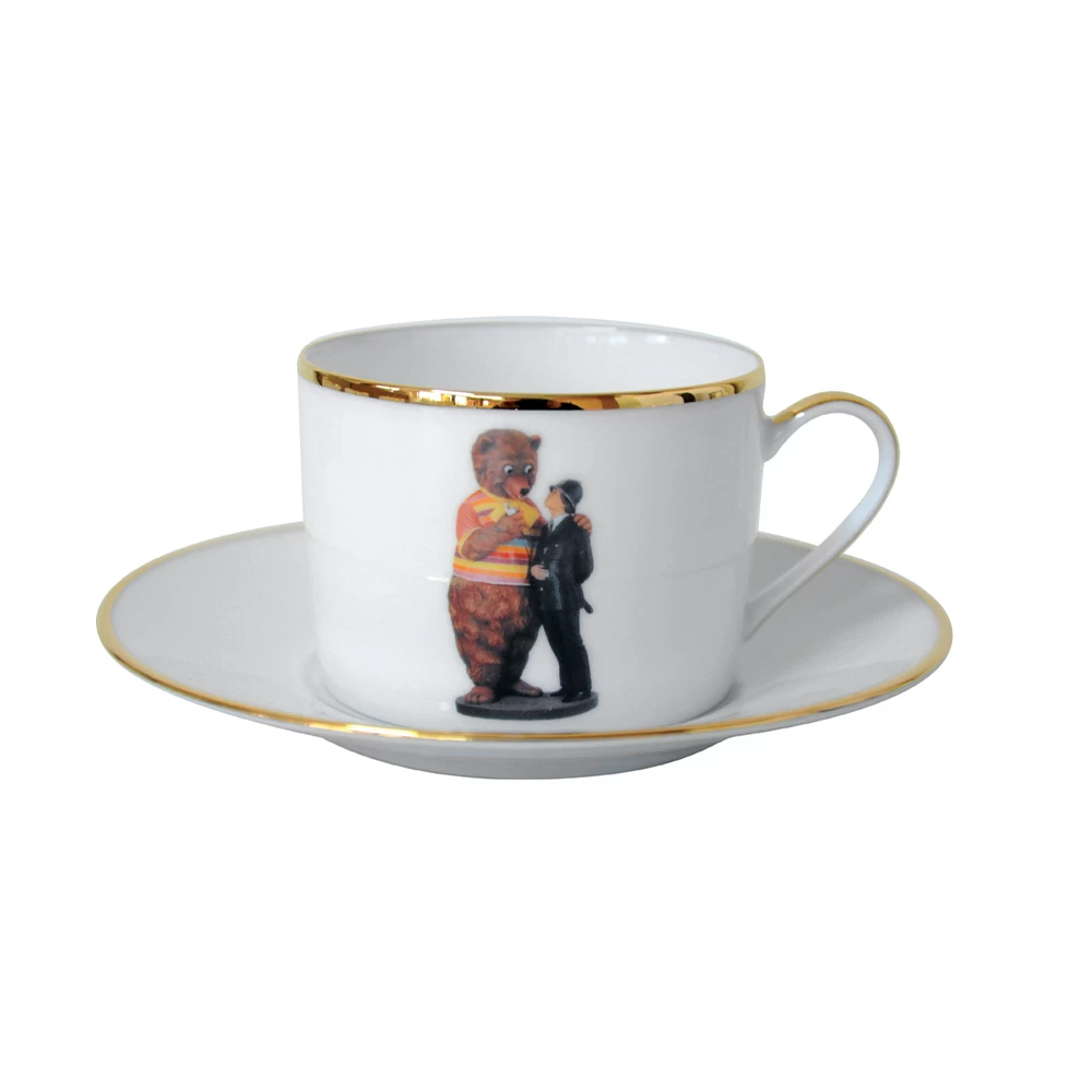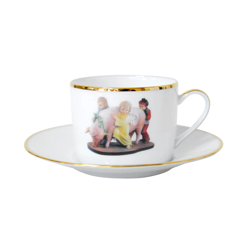 Highlighting Jeff Koons best-known work, Banality Series in 1988, which celebrates popular culture and the banal. Familiar everyday objects and kitsch icons are transformed into fine art sculptures that represent the essence of American pop culture. These iconic sculptural works have been shown throughout the world and have now been reimagined onto this dinnerware service.
