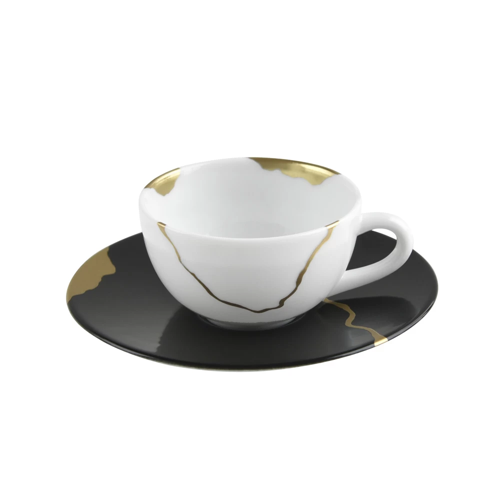 Kintsugi, the art of making visible repairs on fired ceramic using a mix of lacquer and gold. By using golden joinery, the breakage is highlighted as part of the object’s history, rather than something to hide. The artist Sarkis used his fascination of this 16th-century Japanese technique to create this collection with Bernardaud.