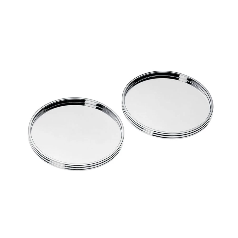 These silverplate and glass coasters present with style and clarity. Set of two.