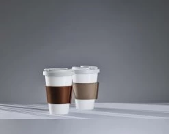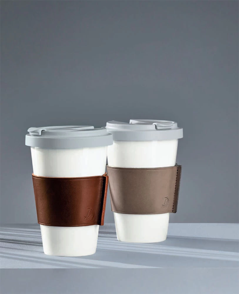 Add a touch of sophistication to your morning with the Dibbern Coffee-To-Go Cups. Composed of a fine bone china cup, leather sleeve, and TPE / PP lid (BPA free.) Dishwasher safe, although hand washing is recommended for the lid. Microwave safe without the lid and sleeve.