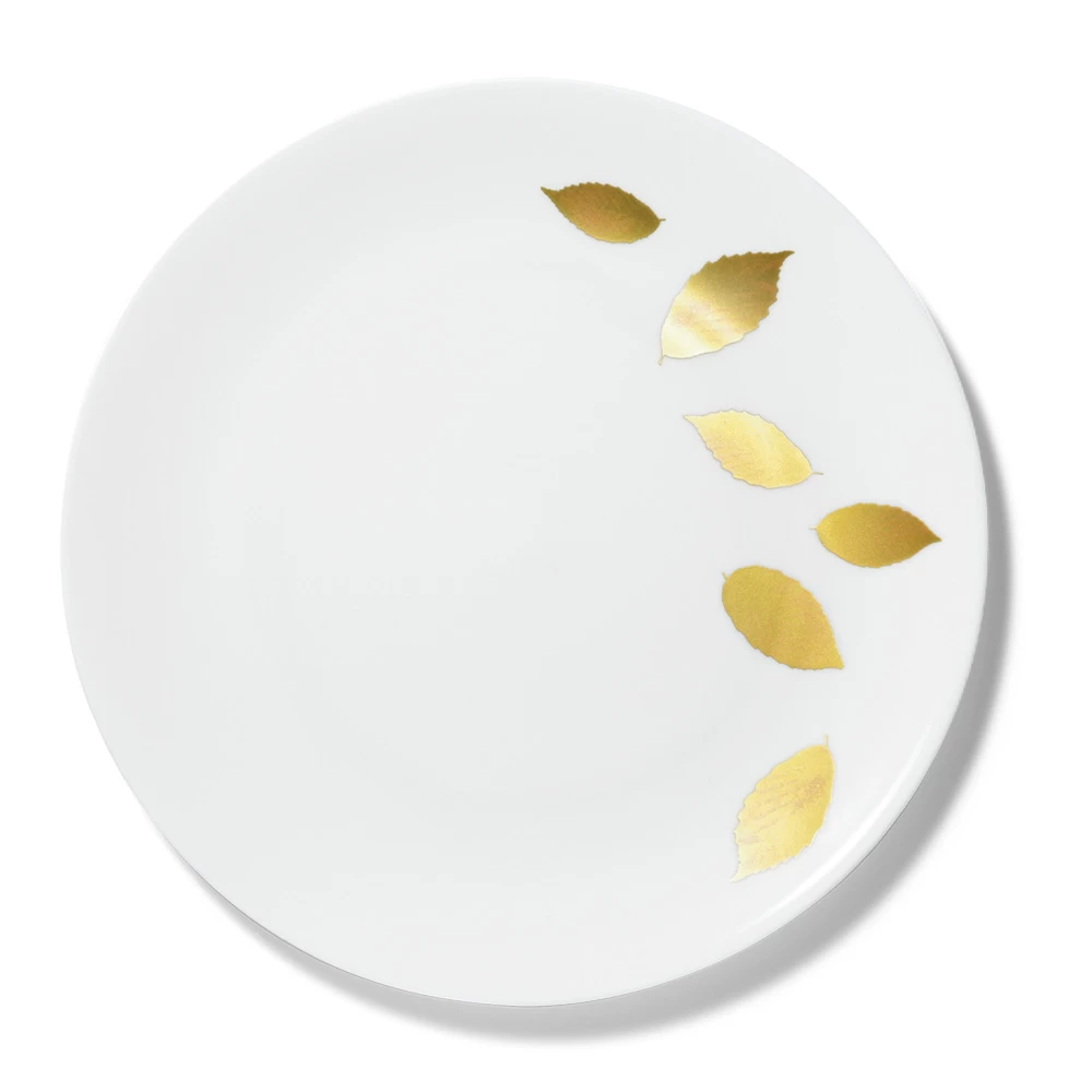 Adorned with golden leaves this dinnerware pattern from Dibbern is both playful and sophisticated. Made from fine bone china, making this collection quite durable. Dishwasher Safe and Not Microwave Safe due to the gold decor.