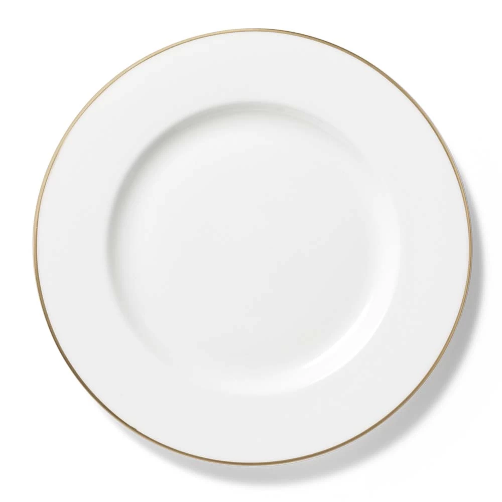 The Golden Lane Collection from Dibbern takes a classic line of white dinnerware and adds an elegant touch with a thin gold rim. Dishwasher safe but not microwave safe due to the gold detailing