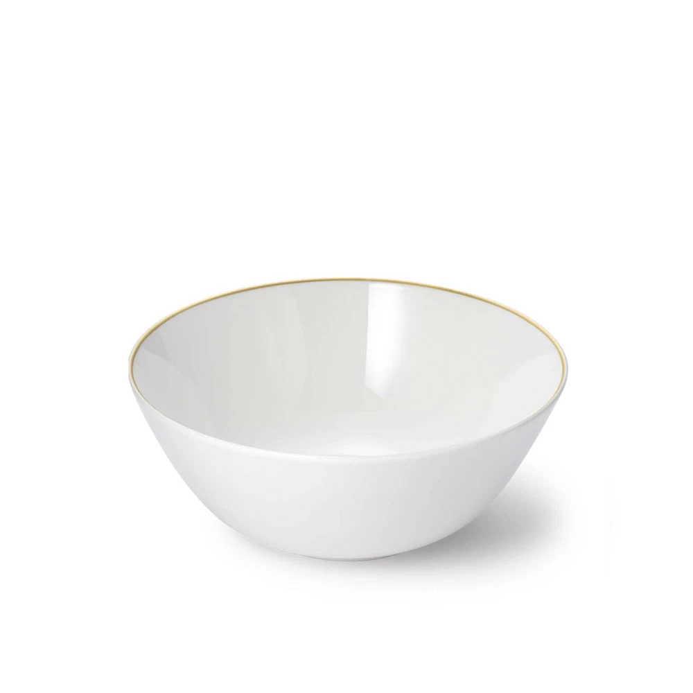The Golden Lane Collection from Dibbern takes a classic line of white dinnerware and adds an elegant touch with a thin gold rim. Dishwasher safe but not microwave safe due to the gold detailing