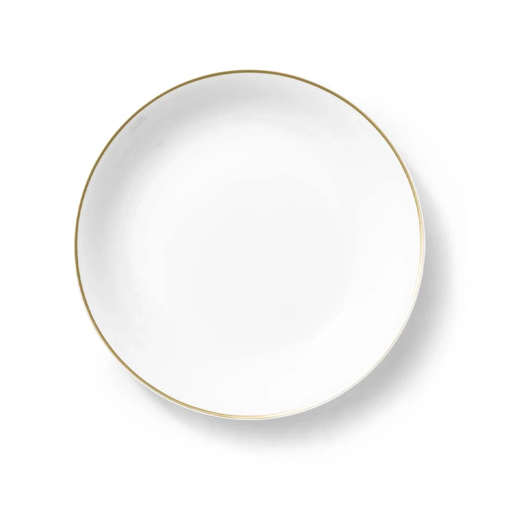The Golden Lane Collection from Dibbern takes a classic line of white dinnerware and adds an elegant touch with a thin gold rim. Dishwasher safe but not microwave safe due to the gold detailing
