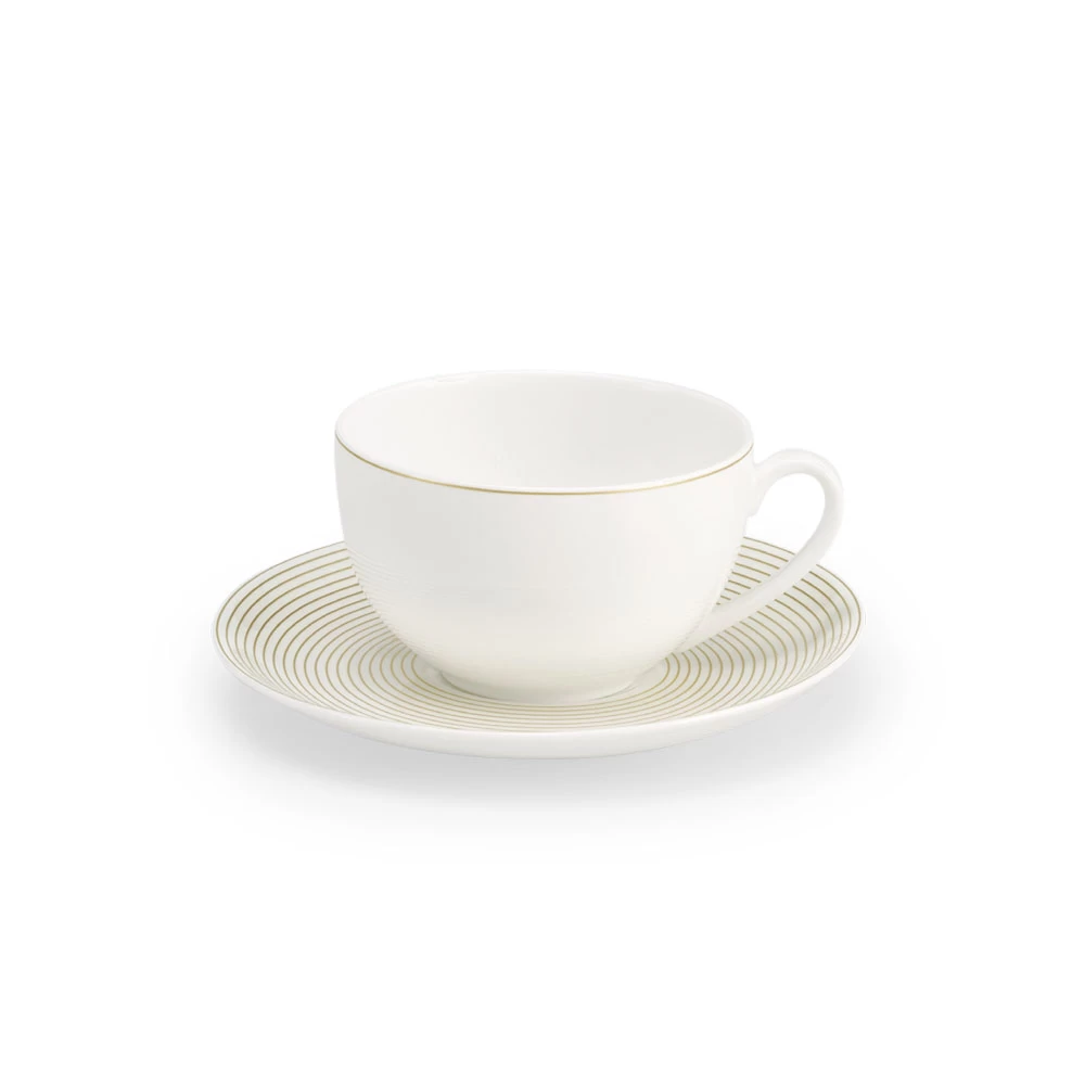 The Savoy Collection from Dibbern features golden stripes adorning white rimmed dinnerware. The subtle patterning adds a touch of sophisticated fun to any tabletop. Dishwasher Safe but Not Microwave Safe due to the gold decor.