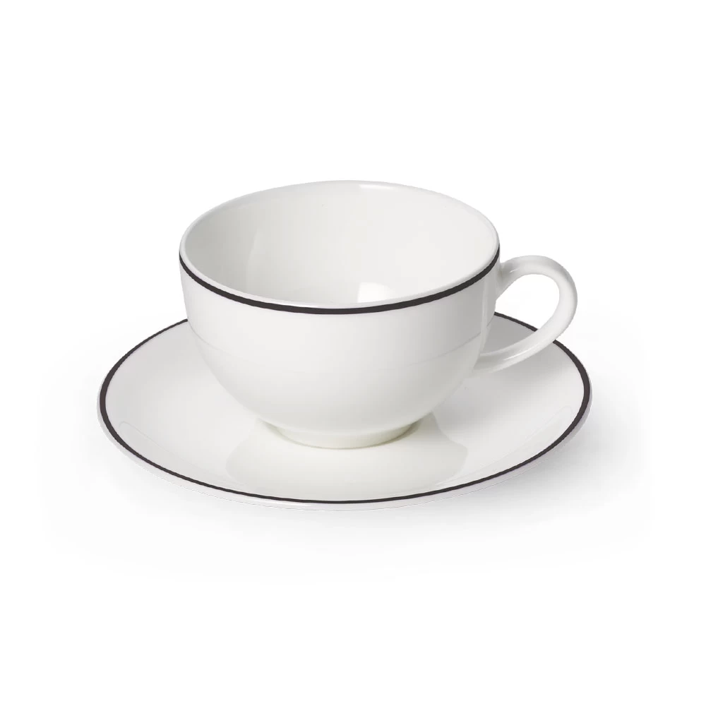 The Simplicity Black Collection by Dibbern features a thin black line around the rim of white glazed dinnerware. This collection exudes modern simplicity. Made from fine bone china, making this collection quite durable. Dishwasher and Microwave Safe.