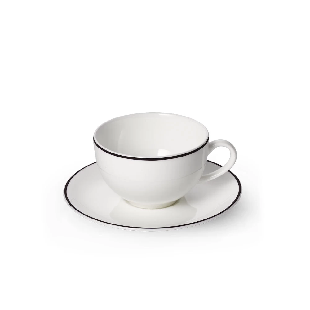 The Simplicity Black Collection by Dibbern features a thin black line around the rim of white glazed dinnerware. This collection exudes modern simplicity. Made from fine bone china, making this collection quite durable. Dishwasher and Microwave Safe.