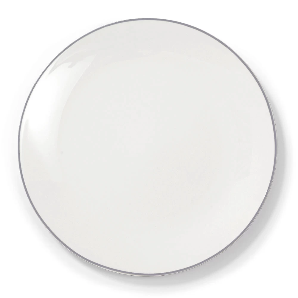 The Simplicity Grey Collection by Dibbern features a thin grey line around the rim of white glazed dinnerware. This collection exudes modern simplicity. Made from fine bone china, making this collection quite durable. Dishwasher and Microwave Safe.