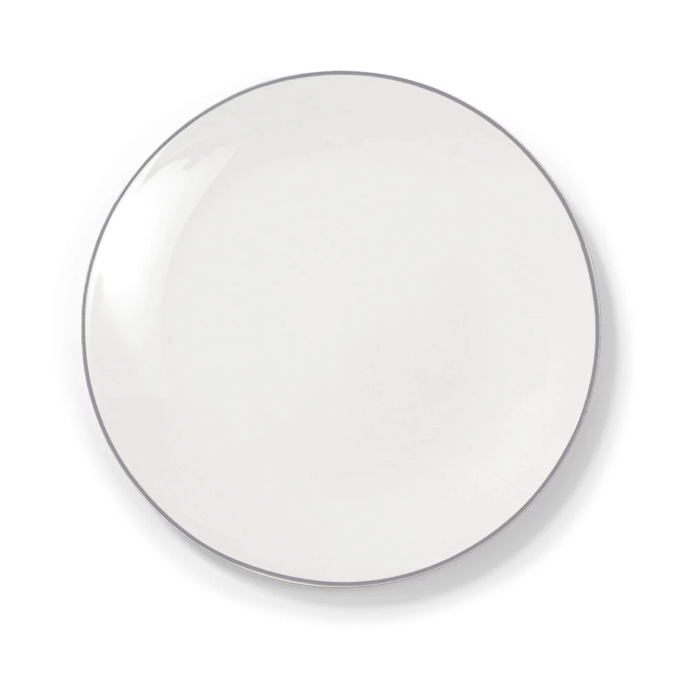 The Simplicity Grey Collection by Dibbern features a thin grey line around the rim of white glazed dinnerware. This collection exudes modern simplicity. Made from fine bone china, making this collection quite durable. Dishwasher and Microwave Safe.