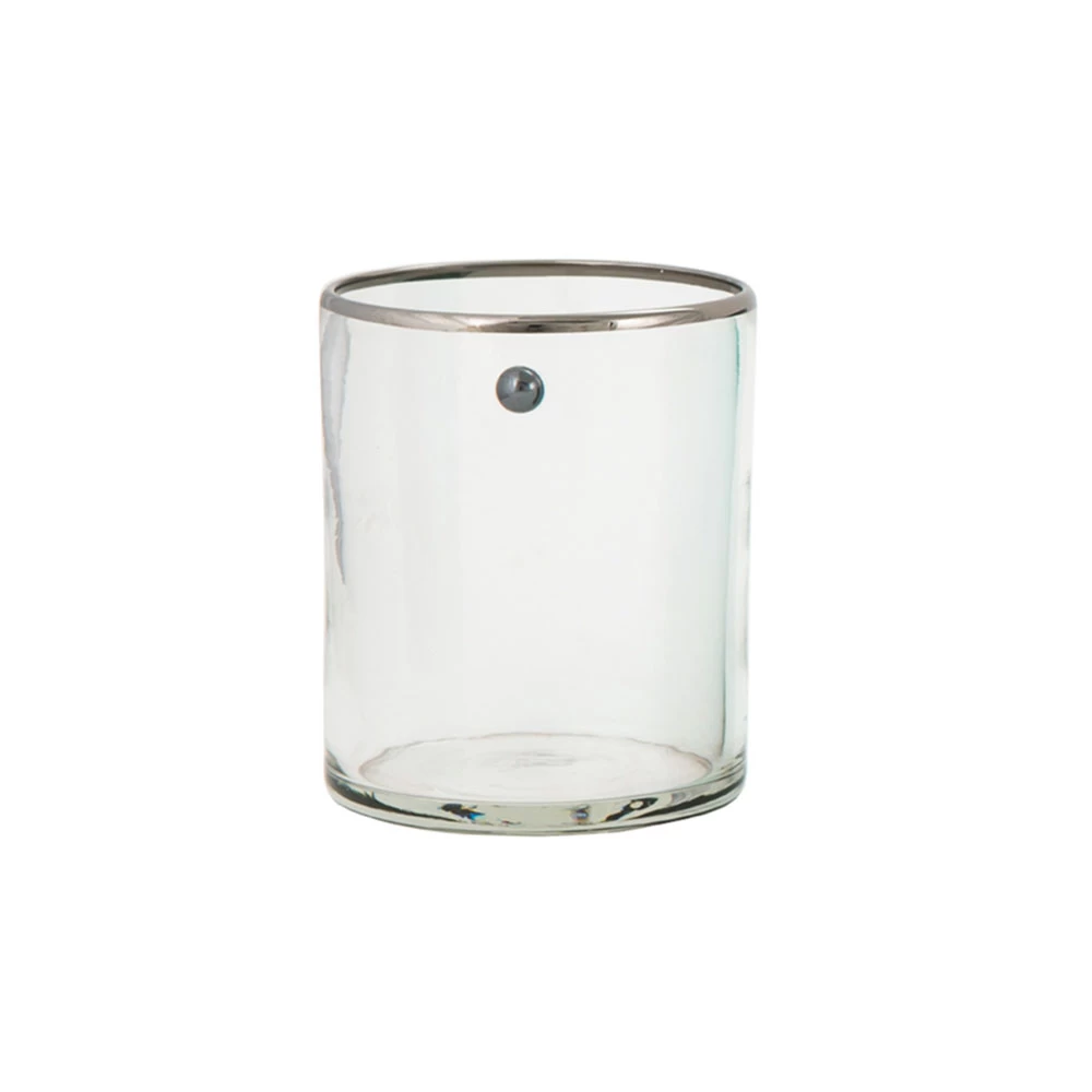 The Jai Shot Glasses feature hand-blown Murano glass embellished with a platinum rim and small hematite stone. The perfect size for drinking liquor and can even be kept in the freezer for a shot of vodka. Set of 4.
