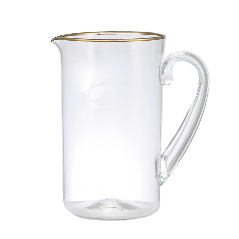 Based on the most classic pitchers made in Murano, the Lola Jug is an homage to Venice. The cylindrical body leads to a marked lip and hot sealed handle. Made of hand-blown Murano glass and adorned with a platinum rim. Pairs perfectly is the and .