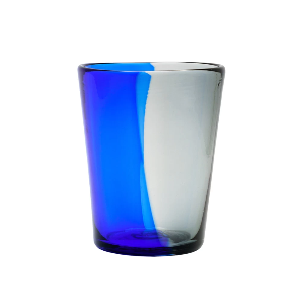 Inspired by the 20thย century artist Rothko and the beloved in red and yellow. Now made in Blue and Grey hand-blown Murano glass. Visually simple yet technically complex, the Rothko Blue Glass combines bold colors and classic design with a modern twist. Set of 4.