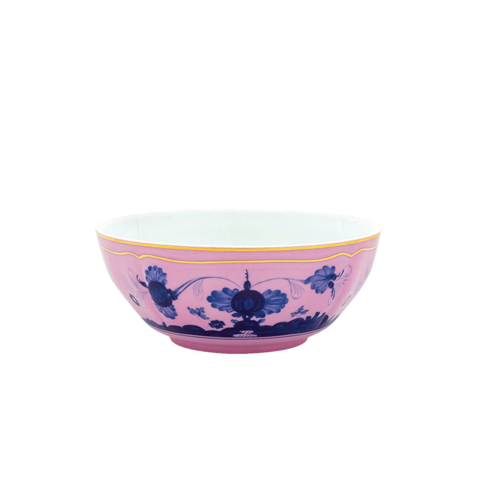 The Oriente Italiano Collection combines exotic beauty with Italian elegance. Evocative floral decorations offer Far Eastern charm. Made from porcelain and adorned with a gold rim. Hand washing recommended and not microwave safe.