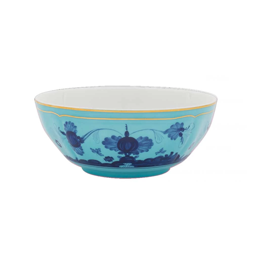 The Oriente Italiano Collection combines exotic beauty with Italian elegance. Evocative floral decorations offer Far Eastern charm. Made from porcelain and adorned with a gold rim. Hand washing recommended and not microwave safe.