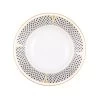 The Herend Art Deco Blue dinnerware combines the fishnet motif with geometric inflection points in 24k gold, adding drama and elegance to each piece. As these two styles combine, Herend enters a new and captivatingly modern era with its dinnerware. Hand wash recommended and not microwave safe. Enjoy the rimmed soup bowl in blue.