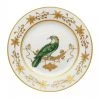The Herend Fish Scale Dinnerware features a hand-painted evergreen fish scale motif along with a golden design on the inner border and gold rim. Fish Scale is one of Herend’s most iconic and historic patterns. The porcelain has a slight textural design leading up to the undulating rim. Hand wash recommended and not microwave safe.