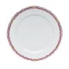 Decorated with greenery, Herend Foret Garland features hand-painted stylized leaves and budding tree branches. The porcelain has a slight textural design on the border, leading up to the undulating gold rim. Hand wash recommended and not microwave safe.
