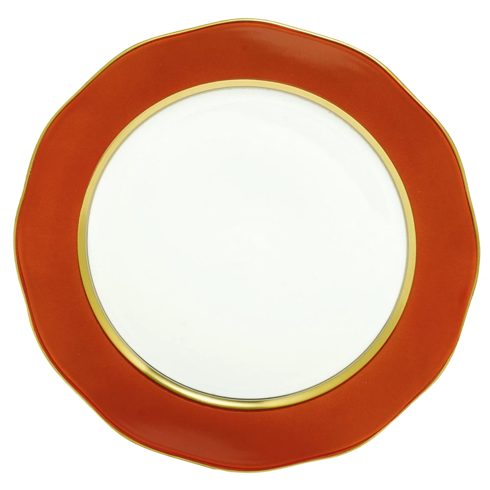 The Herend Silk Ribbon collection features a solid color border with gold detailing around the inner and outer rim and a scalloped shape. This versatile pattern can easily be paired with other collections or used on its own. Hand wash recommended and not microwave safe.