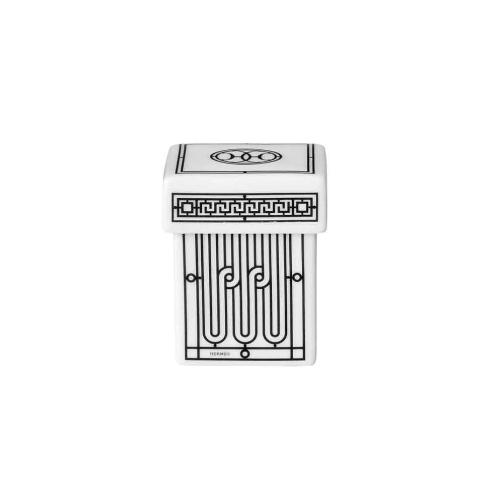 The Art Deco wrought-iron friezes, which adorn the Hermès 24 Faubourg and rue de Sèvres stores, served as the inspiration for the H Déco Parisian tea and dinner services. Intricate black and white patterns surround the HH initials stamped into each piece of the set. The result is a bold and striking design that makes a sophisticated statement.
