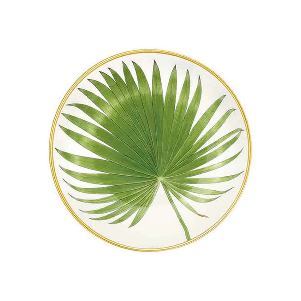 A celebration of tropical foliage, Hermes Passifolia Dinnerware features brightly colored plants and flowers. This new pattern for 2020 pays homage to the beauty of exotic nature. With a variety of bold patterns, this collection was designed to mix and match. Made from Limoges porcelain and detailed with a gold rim.
