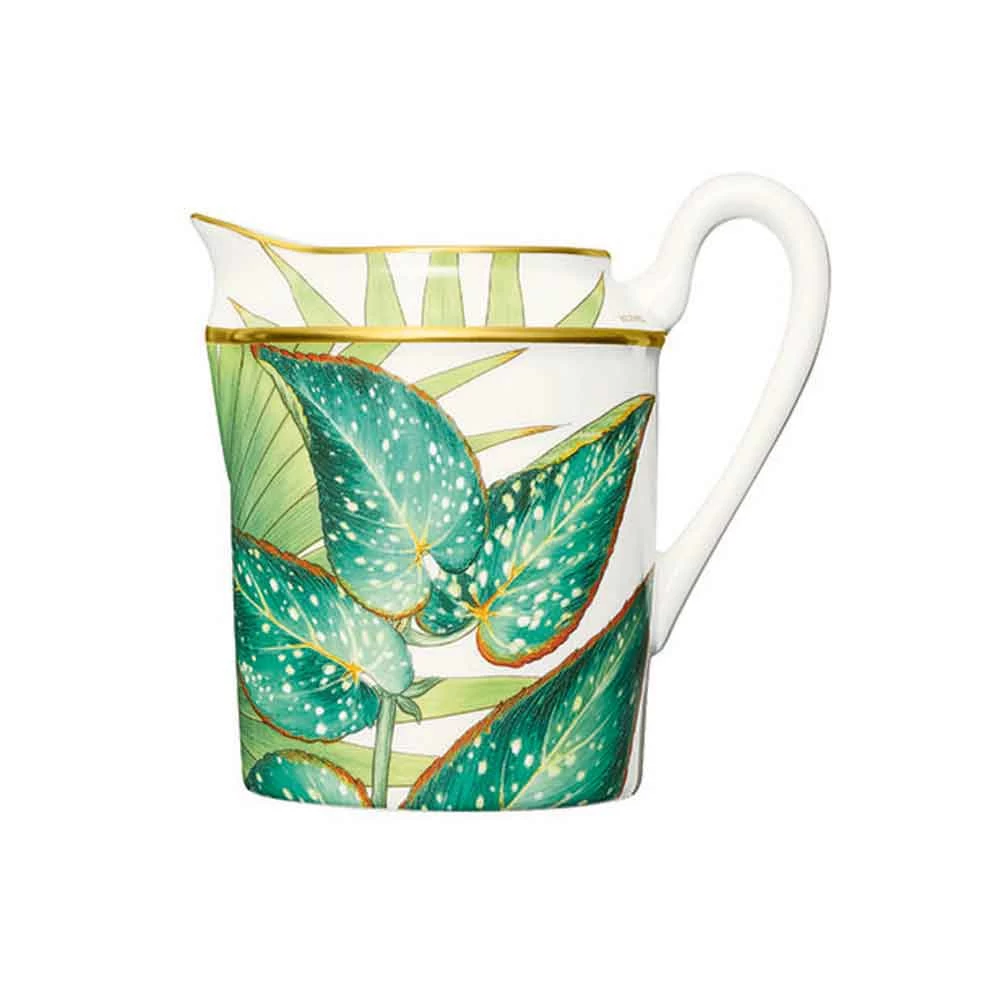 A celebration of tropical foliage, Hermes Passifolia Dinnerware features brightly colored plants and flowers. This new pattern for 2020 pays homage to the beauty of exotic nature. With a variety of bold patterns, this collection was designed to mix and match. Made from Limoges porcelain and detailed with a gold rim.