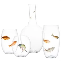 The Lobmeyr Balloon Tumblers with Painted Fish feature hand-painted designs from Ted Muehling. Painted on hand blown ultra-thin, lightweight muslin crystal. Choose from three different glass shapes, each with three varying fish patterns.