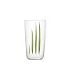 The Beautiful Numbers collection features a variety of leaves to represent environmental impact in a positive perspective. It highlights environmental developments from the past years that are either neutral or positive. This data is visually depicted by the size and shape of each leaf. Illustrations by Raxenne Maniquiz decorate the No. 4 Beer Tumbler. Designed by Stefan Sagmeister in 2021.