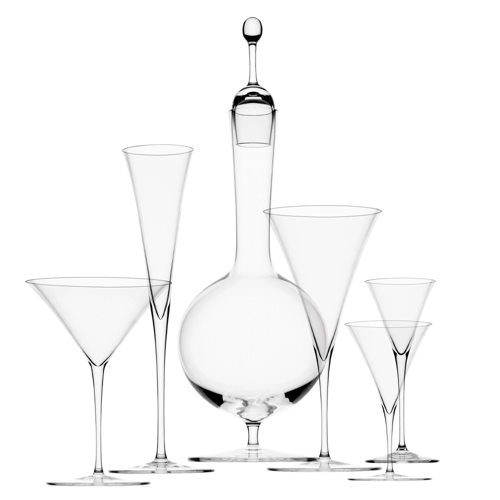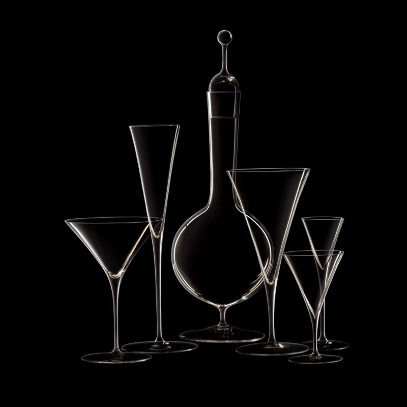 As if in celebration, the lines of this collection rise from base to lip in uninterrupted outward curves. A joyous and elegant design, in Lobmeyr’s finest muslin glass.