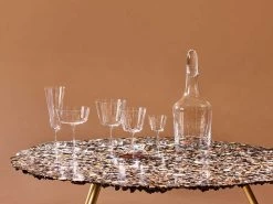Experience the beauty and functionality of Lobmeyr Commodore glassware, a stunning drinking set from the 1950s. Designed by Viennese architect Oswald Haerdtl and made of delicate muslin glass, this collection exudes timeless elegance. In this innovative mid-century collection, curves subtly give way to a more angular design. Classic materials and proportions balance perfectly the collection’s modern lines. Elevate your drinking experience with this exquisite vintage charm today.