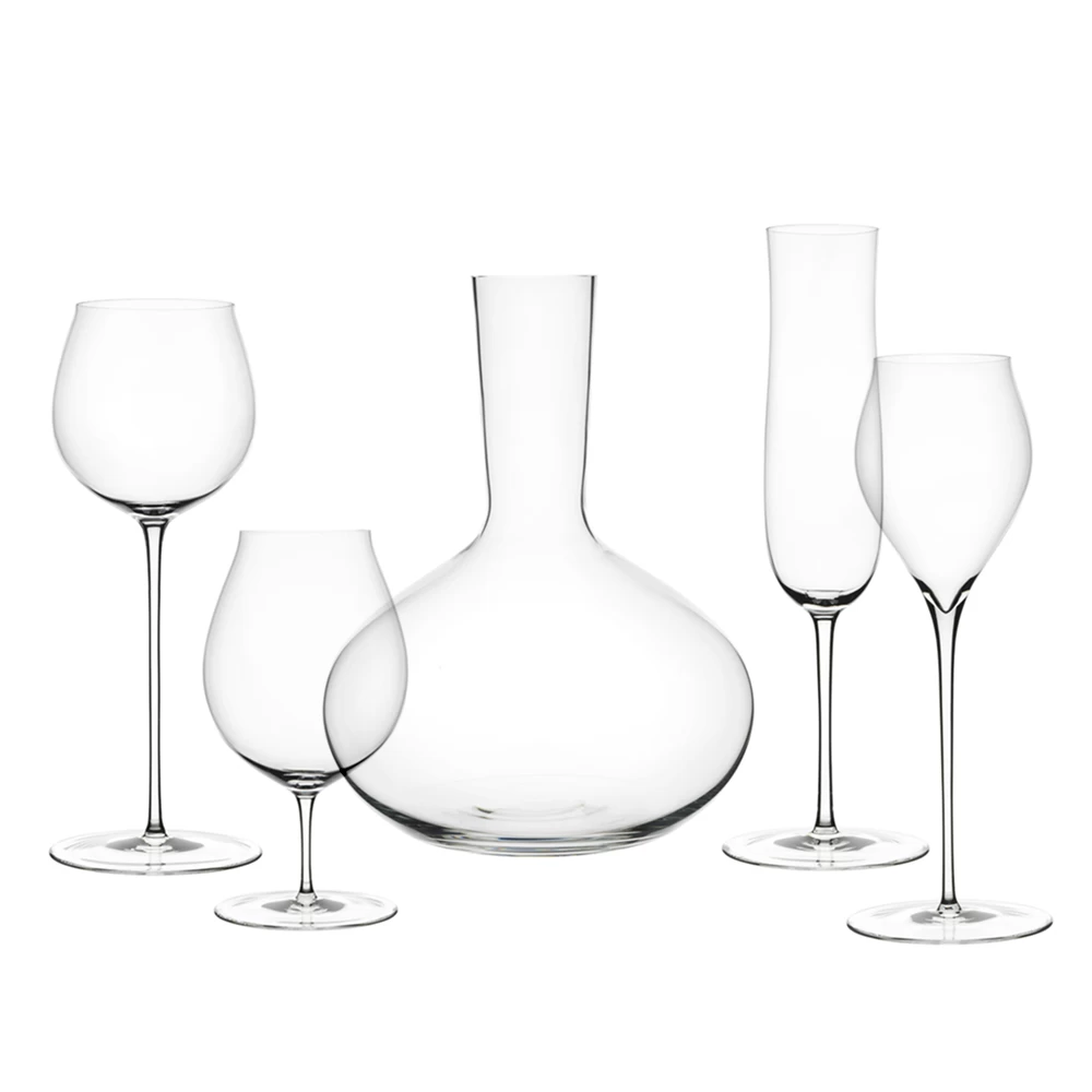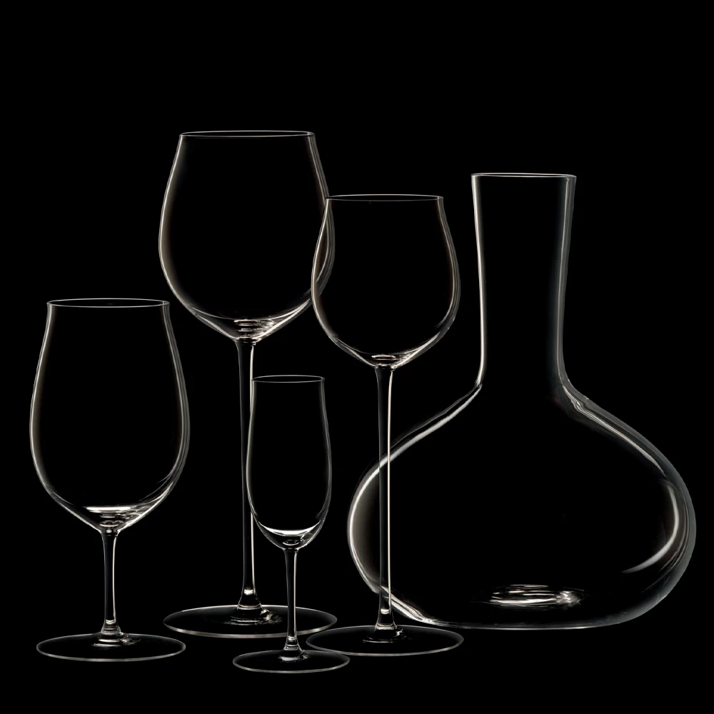 Designed to evoke the feeling of joy and lightness that comes from using these glasses, the Ballerina Collection of ultra-thin muslin glass stemware is characterized by an uncommon gracefulness. Slender stems support curves that bow outward before drawing in for a subtle flourish at the lip.