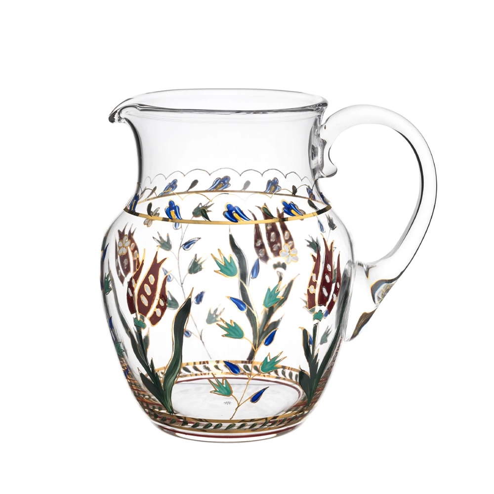 Lobmeyr Oriental Flowers highlight the popularity of oriental ornamentation in 1870s Europe. This pitcher is beautifully hand painted with a flowing scene of brilliantly colored flowers. Made from mouth blown lead-free crystal. This collection was inspired by a wide range of decors designed by Gustav Schmoranz for Lobmeyr in 1898. Available in three designs: Persian, Indian, and Chinese.