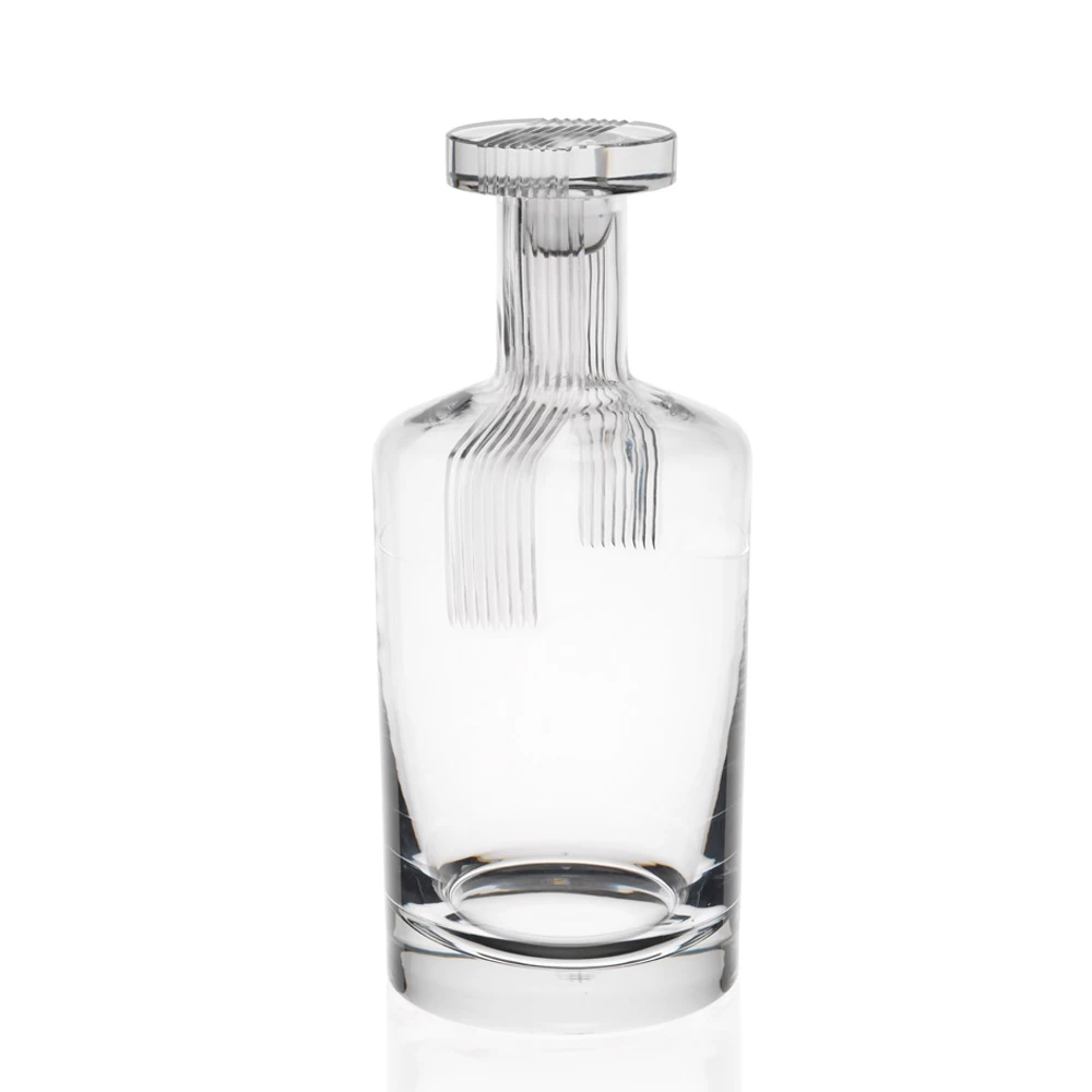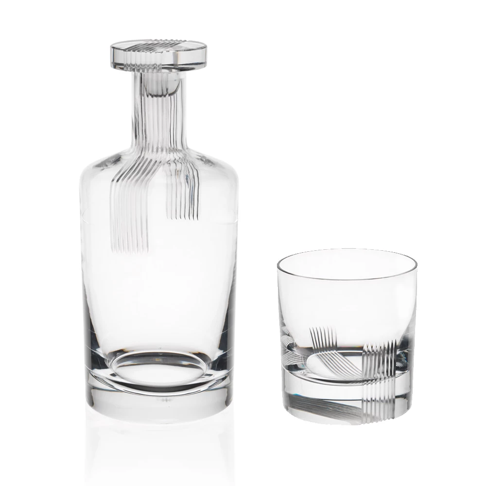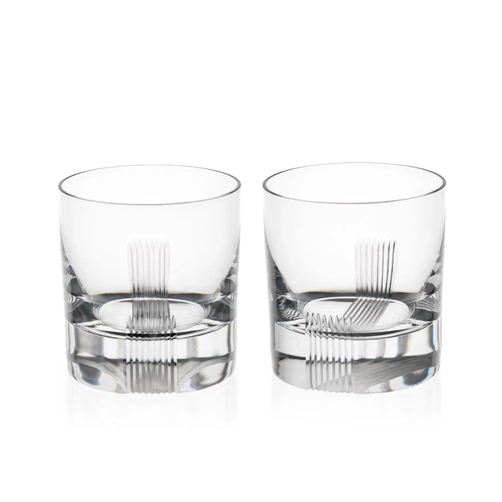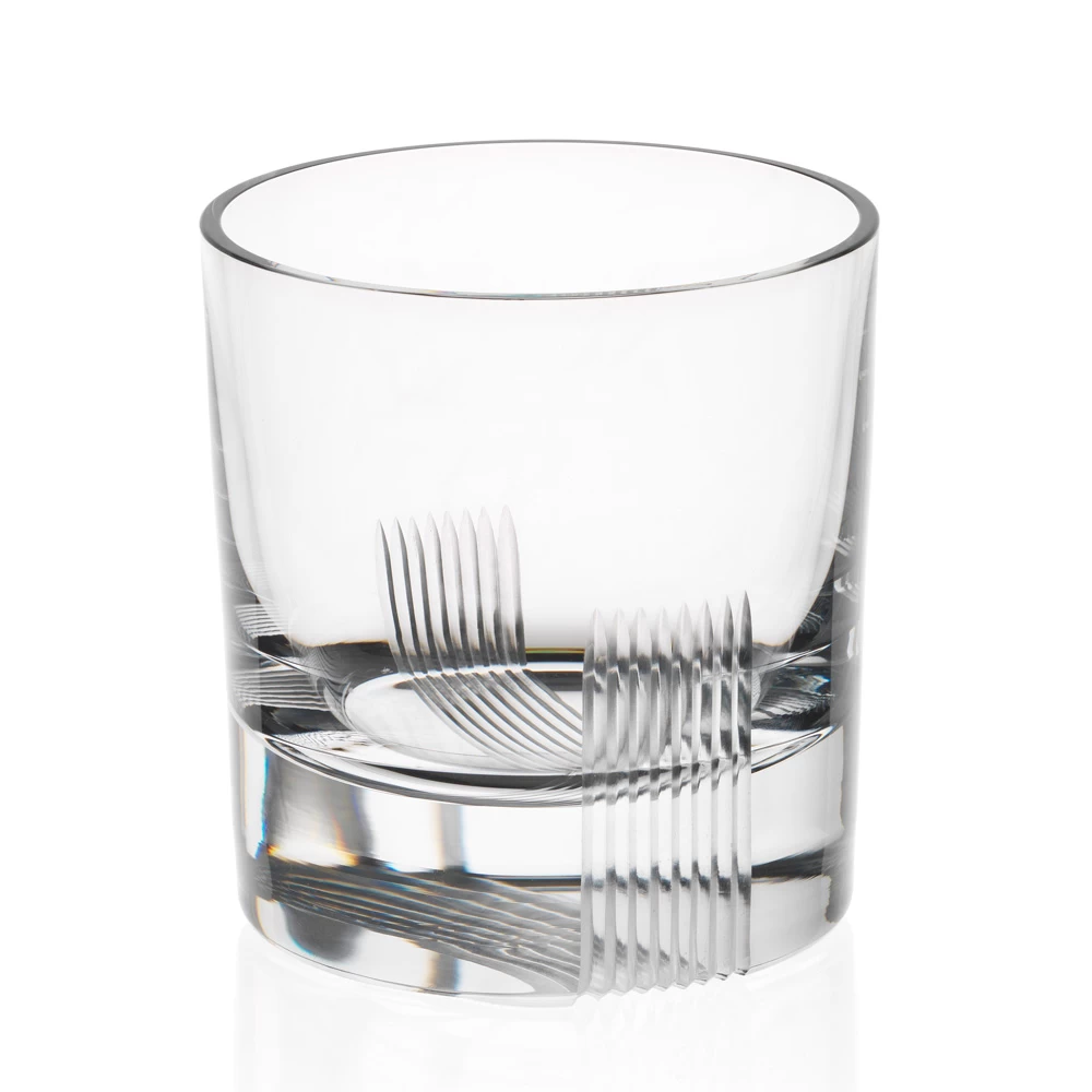The Scotch Double Old Fashioned Tumbler was designed by Robert Stadler in 2018. The naming of the Scotch series is a play on words, referring both to scotch as a spirit and to the design elements reminiscent of a piece of scotch tape. In fact, Stadler was inspired by sealing a paper strip to the top of a decanter.ย In respect to the glasses, the โtapeโ strips flowing up the glass represent 2 different pour sizes, 6 and 12 cl.ย These are a heavy weight glass.