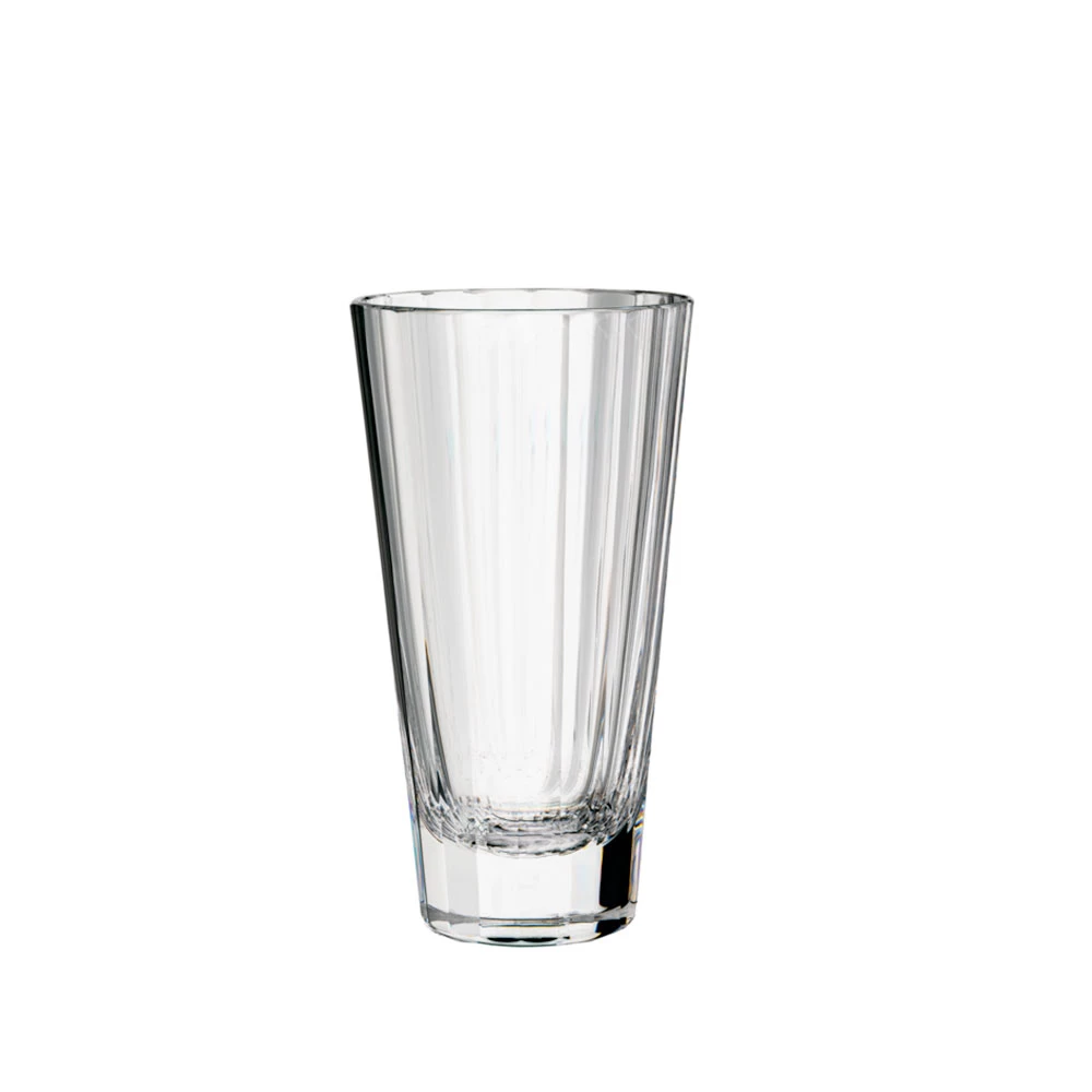 A triumph of visual fascination, the vessels in the Triennale Collection have faceted outsides that encircle round insides, as well as bottoms so thick that the liquid inside seems to hover. The collection’s heavy construction is both complemented and lightened by the depth and clarity of the crystal.