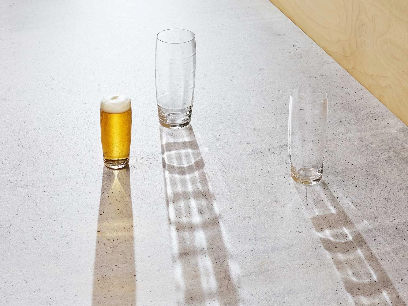 The Wiener Stutzen Optic Beer Tumblers by Lobmeyr combine the sturdy, masculine feel of the classic beer glass with the simplicity of a beer tumbler. Created by using the traditional European technique of optical molding, this tumbler features differences in wall thickness that give an artistic optical effect.