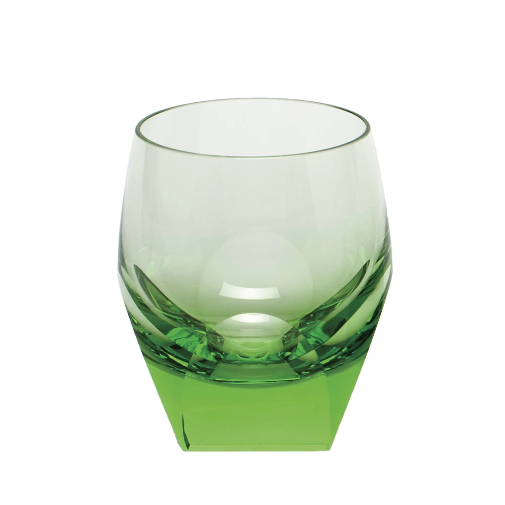 Discover the Moser Bar Whisky in Ocean Green from the Moser Bar collection. Rudolf Escher’s 1934 design captures the functionalism of the thirties, a departure from the vibrant aesthetics of the twenties. Moser’s Bar pattern contains their classic “Ice Bottom” square cut base, creating an illusion of melting ice in the drink’s warm hues. These hand-cut, polished glasses and carafes offer both stability and lightness. The square base ensures steadiness, while the precisely-cut arches play with light beautifully. Available in clear crystal and a range of Moser colors, including platinum decoration or gilding. The choice is yours for a touch of elegance. Made of Bohemian crystal.