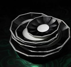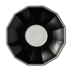 Perhaps the single most iconic service in Nymphenburg’s history, the Pearl pattern dates back to 1793 and was considered so exquisite that for over 100 years that it was reserved exclusively for the Bavarian royal family. Based on an unprecedented 12-sided shape and named for the line of pearls that runs along its edges, Pearl connects the past to the present with a timeless opulence and a design that is still striking. Porcelain with black overglaze and hand detailing in platinum. Hand wash only.