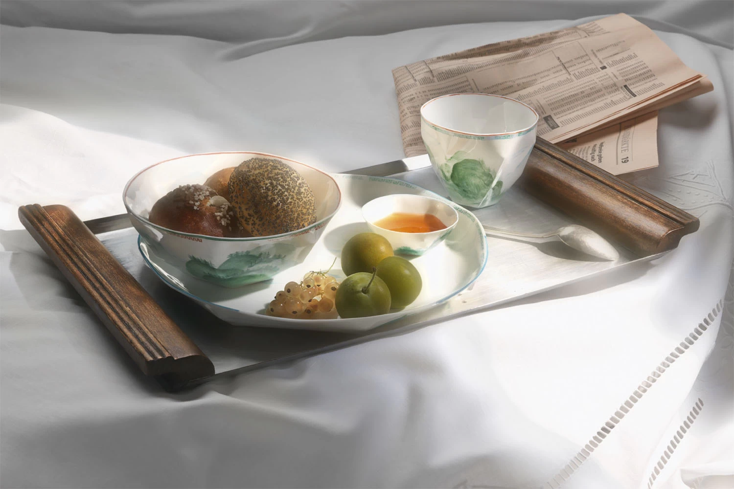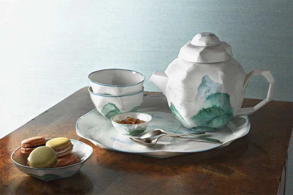Inspired by the Far East, Argentinian designer, Ruth Gurvich created her Lightscape designs in collaboration with Nymphenburg. Each piece was first molded in paper and then handcrafted in porcelain. Delicate Asian landscapes adorn these beautiful vessels.
