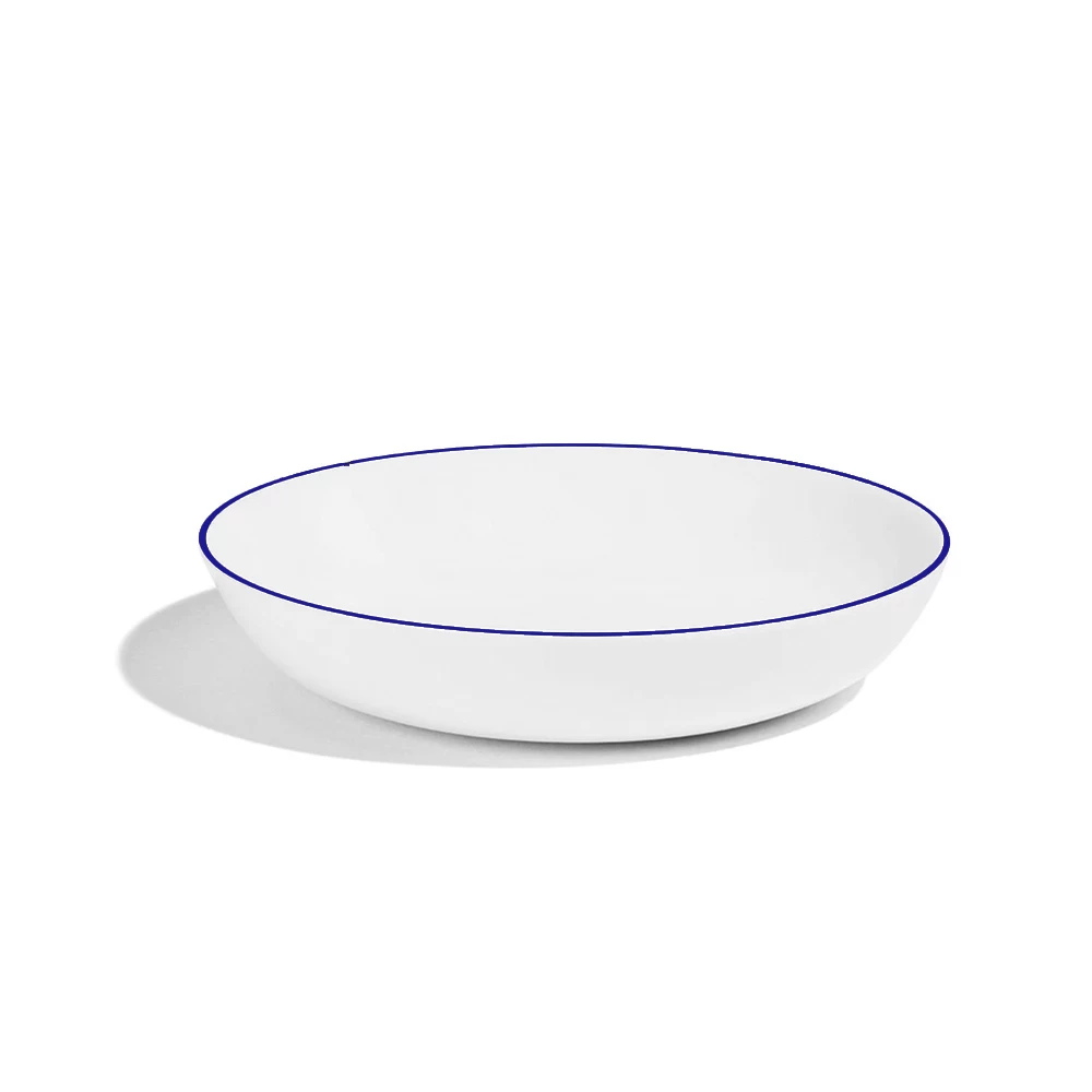 Handcrafted from pure English bone china, the Line dinnerware collection from Richard Brendon is available with eight different rim color options. The bright white ceramic is the perfect canvas for food presentation while the simple cobalt line is classic and beautiful.