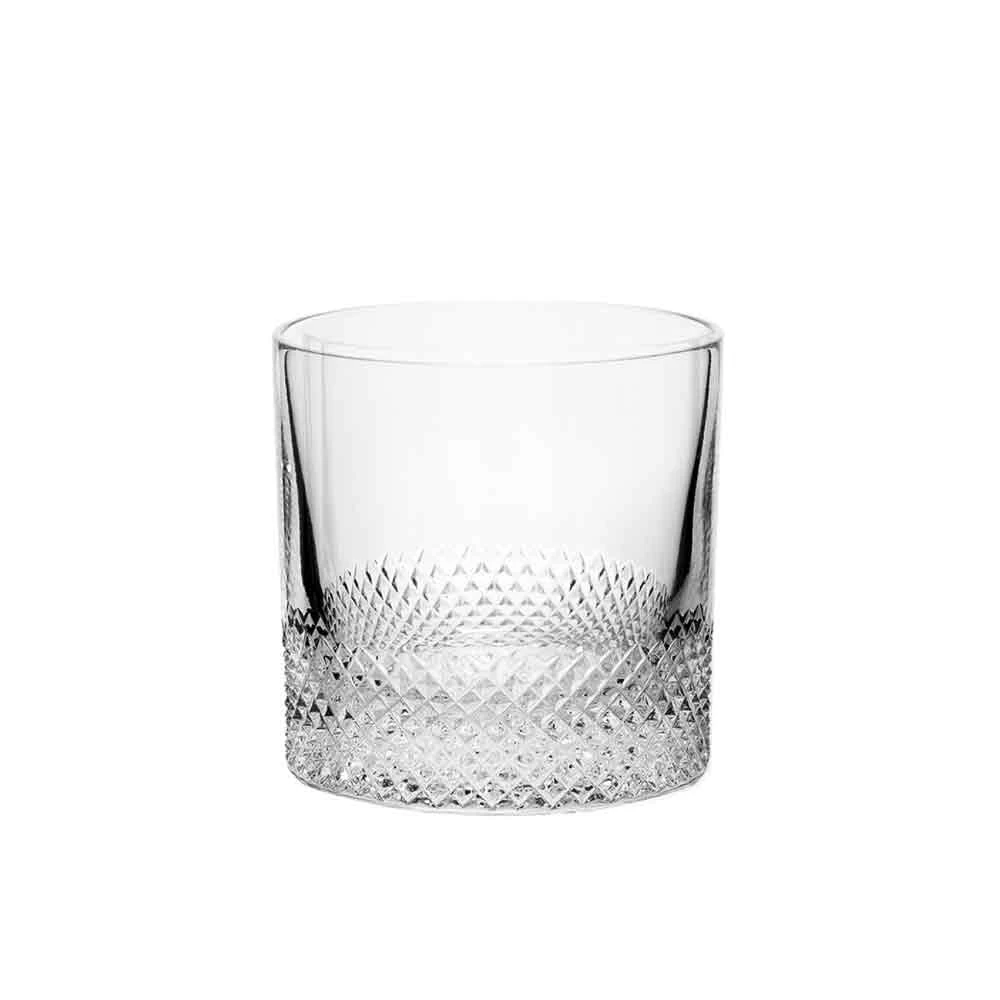 Discover Richard Brendon’s Diamond Single Old Fashioned. The Diamond glassware collection is a contemporary barware pattern that brings a clean-cut look to the standard lead crystal. Each piece features a bold diamond pattern adorning the lower third, extending over the base for an added tactile dimension. Elevate your cocktail and fine spirit experiences with these exquisite glasses and decanters, a true complement to any occasion. When light shines through the crystal it is creates a spectrum of colors and sparkles, enhancing any drinking experience.