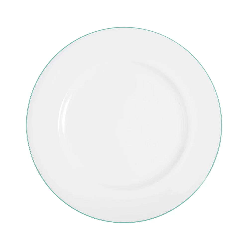Handcrafted from pure English bone china, the Richard Brendon Spearmint Line dinnerware collection from Richard Brendon is available with eight different rim color options. The bright white ceramic is the perfect canvas for food presentation while the spearmint line rim gives these pieces a fresh feel.