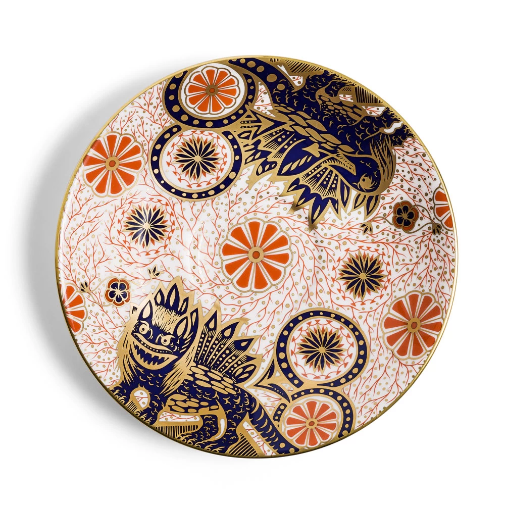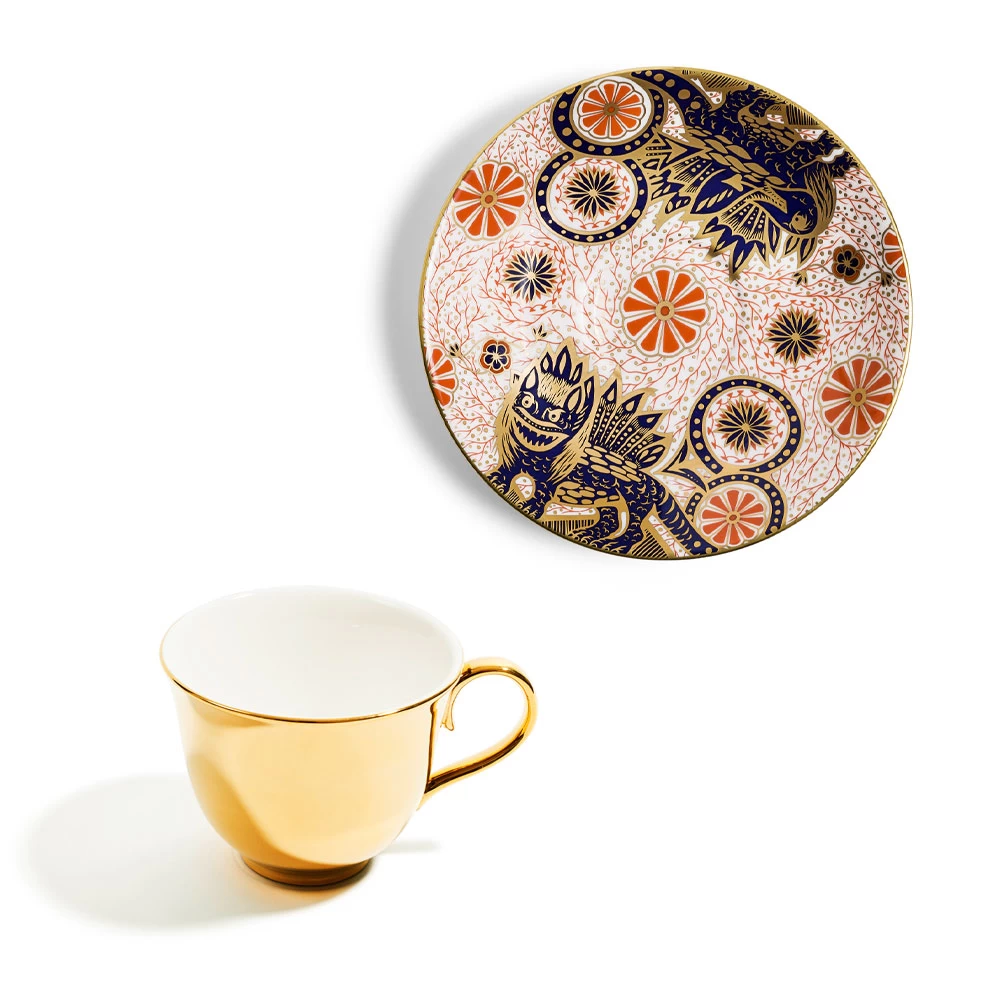 About the saucer: The captivating Mythical Beasts collection is a fusion of intricate patterns from Thomas Rose Coalport and Miles Mason. With an infusion of eastern-inspired surrealism, Richard ingeniously revives Coalport’s mythical creatures in a striking new light. These dragon motifs appear fierce at first glance and then reveal their friendly essence. This design symbolizes fortune and will bring good energy with each sip.