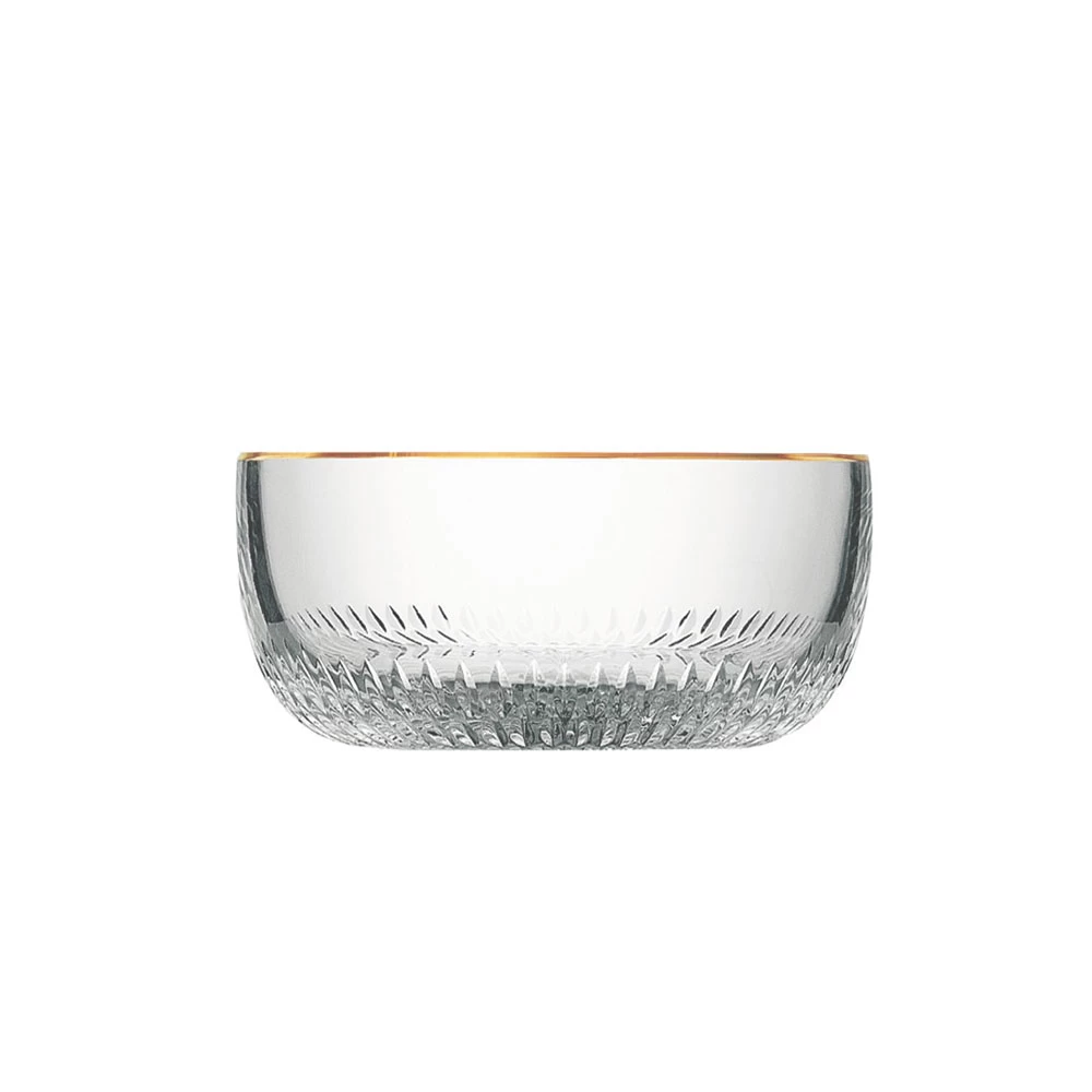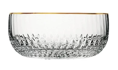 Based on Saint-Louis’ classic Thistle pattern and now featuring a sleek golden rim, the Apollo collection’s fine engraving and flowing lines express, with clarity, the essential liquid nature of crystal. Founded in 1767–with roots going back almost 200 years earlier–the Cristallerie Royale de Saint-Louis has shaped the very history of glasswork, and created fine crystal for generation after generation of kings and queens. Today, Saint-Louis forges a path between heritage and innovation, remaining strenuously committed to preserving the methods it’s perfected over centuries of high-level craftsmanship, while at the same time staying on the cutting edge of modern crystal techniques and design.
