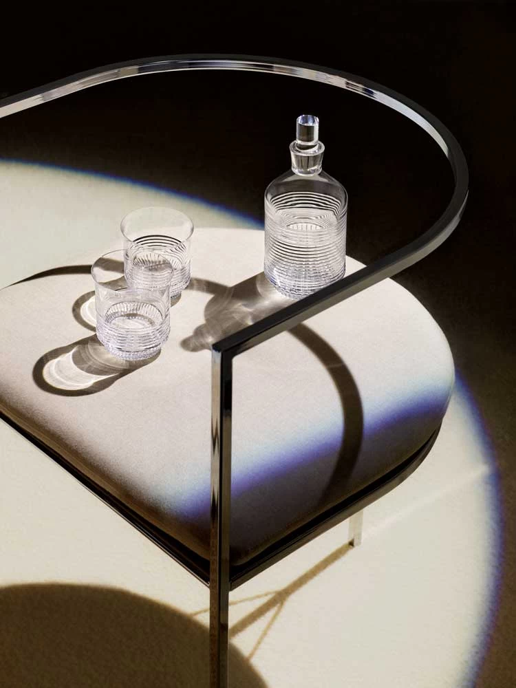 The Cadence Collection by Saint-Louis makes a statement with its modernity and simplicity. Featuring an interplay of horizontal and vertical lines, this collection offers a contemporary take on crystal. Mouth-blown by masterful glassblowers, the regularity and repetition of the cuts enhance the brilliance and clarity of crystal. Designed for everyday use by French designer Pierre Charpin.