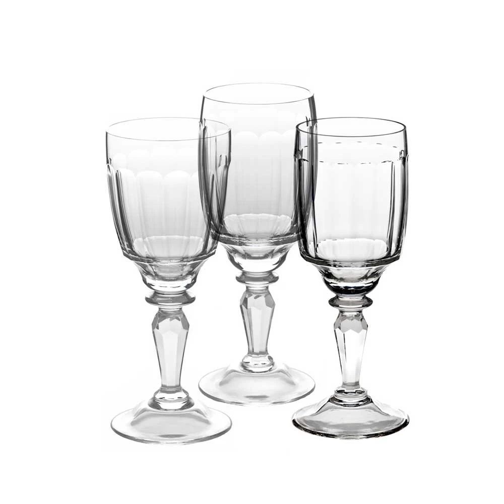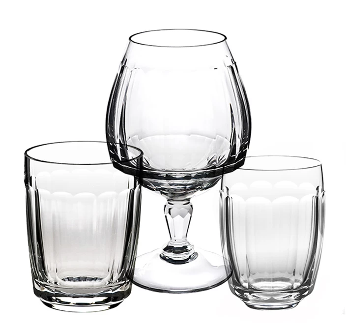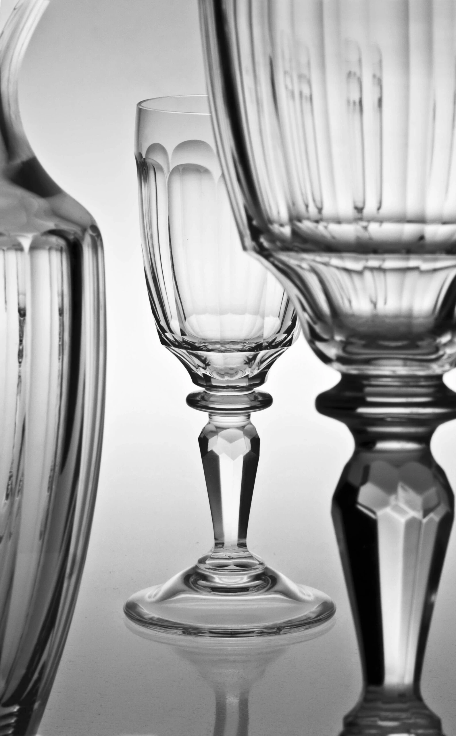 The flat cuts at the stem and base of the Otto goblet were intentionally placed to facilitate glass holding. The cuts along the chalice, however, exist merely to delight. The mouthblown series is also available with a broad, textured 24k gold rim. Can be monogrammed with your initials or engraved with a coat of arms. Designed by Gottfried Palatin.