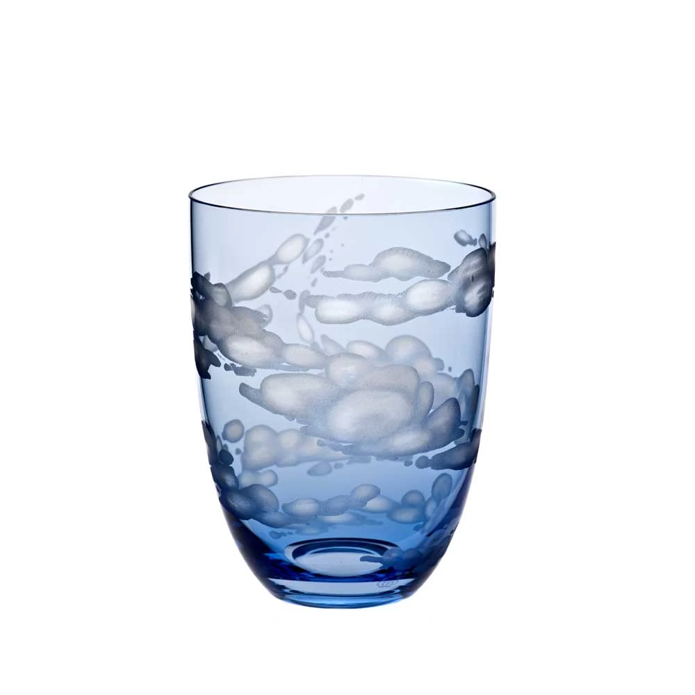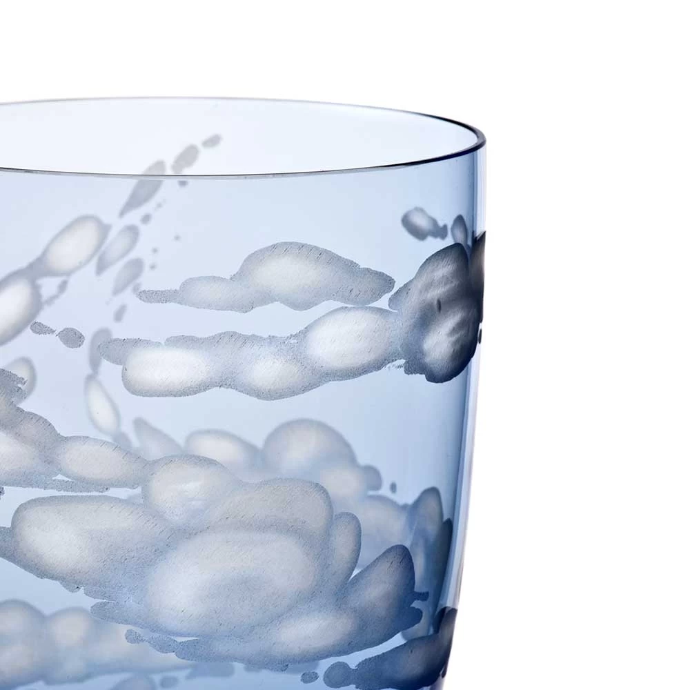 Planet Earth, outer space and clouds are the object of affection on tumblers in the Planet Earth series. Mouthblown tumblers are made with two layers of glass; clear on the inside and a very thin colored glass outer layer, which is engraved or cut to reveal pictures of life here and afar.